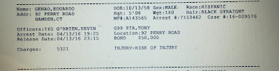 On April 13, 2016 HPD Investigators submitted an arrest warrant for Eduardo Genao to the Hartford CT States Attorney’s Office (GA14). The warrant was approved. HPD investigators took Genao into custody at his home in Hamden CT without incident. Genao was transported to HPD Booking where he was charged with a single count of Risk of Injury to a Minor and given a $50,000 bond. Genao posted bond and was released. He has a scheduled court date of April 20, 2016.