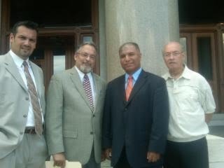 Pictured above, New Haven Representative Juan Candelaria, Connecticut Democratic Hispanic Caucus Chairperson Tomas Reyes, 4th District Candidate Angel Morales and former Hartford Deputy Mayor Eugenio Caro on the steps of the Capitol as they announce the "unanimous" endorsement of Morales last Friday