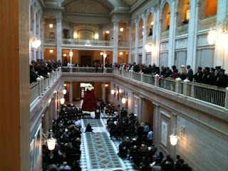 The atrium was full and it was shoulder to shoulder standing room only at the railings on the 2nd and 3rd floors. I think part of it was that Chief Rovella's choices for Deputy Chief's were extremely popular with the rank and file , who showed up to support the new Chief's. There were also many members of the public as well as HPD retirees that showed up to share the sense of optimism that they are feeling in Chief Rovella's vision. He has made tremendous progress in a short period of time and he doesn't seem to be slowing down at all.