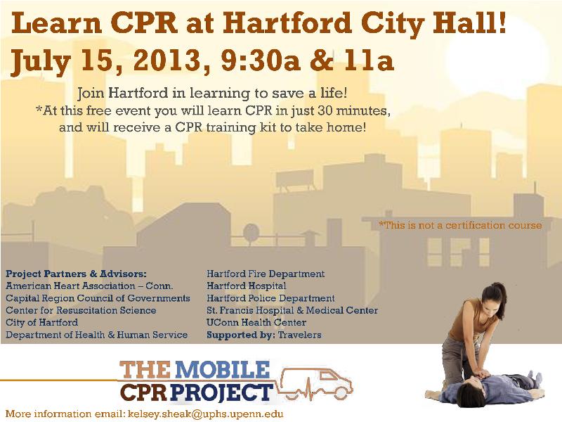 LEARN CPR AT HARTFORD CITY HALL TOMORROW