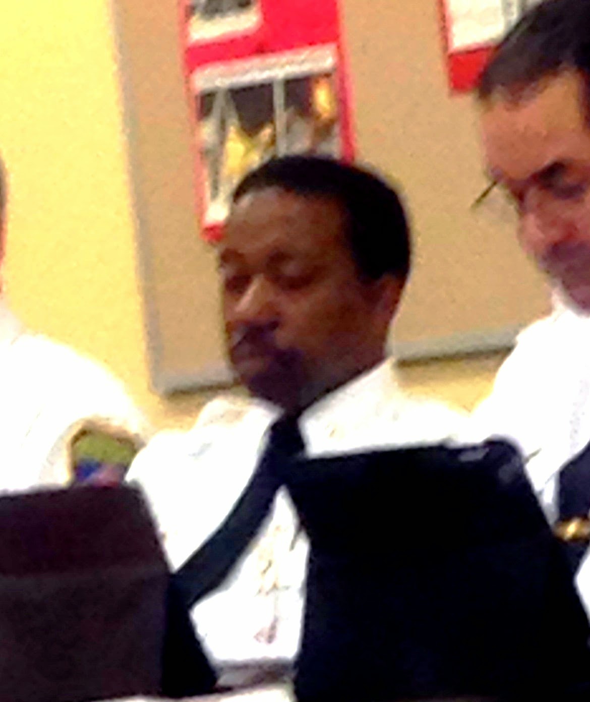 Hartford Fire's Terry Waller Catching a few winks during a department meeting, probably a rough night shuttling the Corp Counsel around town