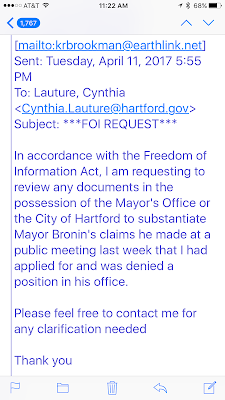 On April 5th I posted about false claims directed at me during a community meeting by Mayor Bronin. You can read that posting about the meeting here :http://wethepeoplehartford.blogspot.com/2017/04/my-sympathies-to-mayor-bronin.html