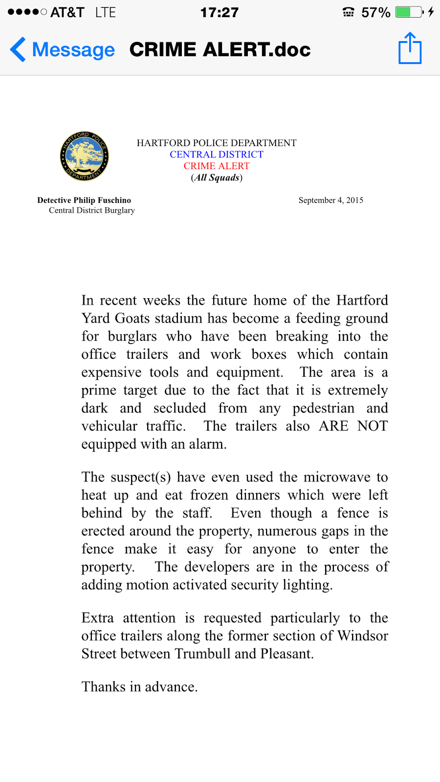 The Hartford Police Department has information